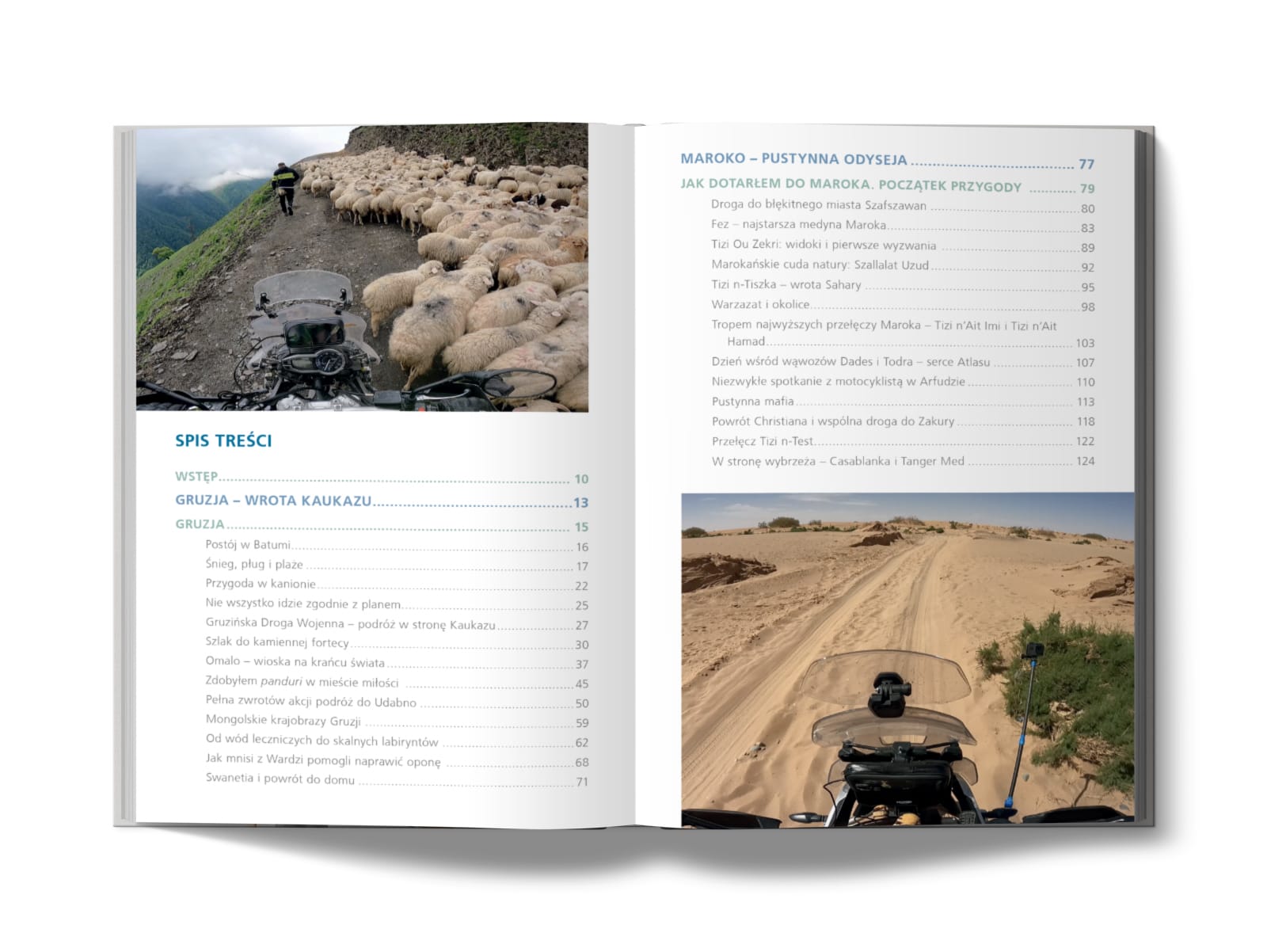 Musiałem wrócić pamięcią do przeszłości, obejrzeć stare filmy, przypomnieć sobie emocje, detale, drobiazgi – i wszystko to przelać na papier. To nie była jedna wyprawa. Trzeba było napisać to tak, aby było ciekawe, nie nużące, abyś Ty czytając to nie nudził się. To były podróże z Gruzji, Maroka, Wysp Owczych, Islandii, Albanii, Czarnogóry, Grecji (w tym Korfu). Trzeba było też na nowo rozrysować trasy GPX, zebrać porady dla motocyklistów i jak to sobie nazwałem – napisać coś w rodzaju „psychologii podróży”. Opisałem, jak te wyprawy mnie ukształtowały, jak solo jazda zmienia człowieka. Jak zmieniła mnie i jak może zmienić też Ciebie.