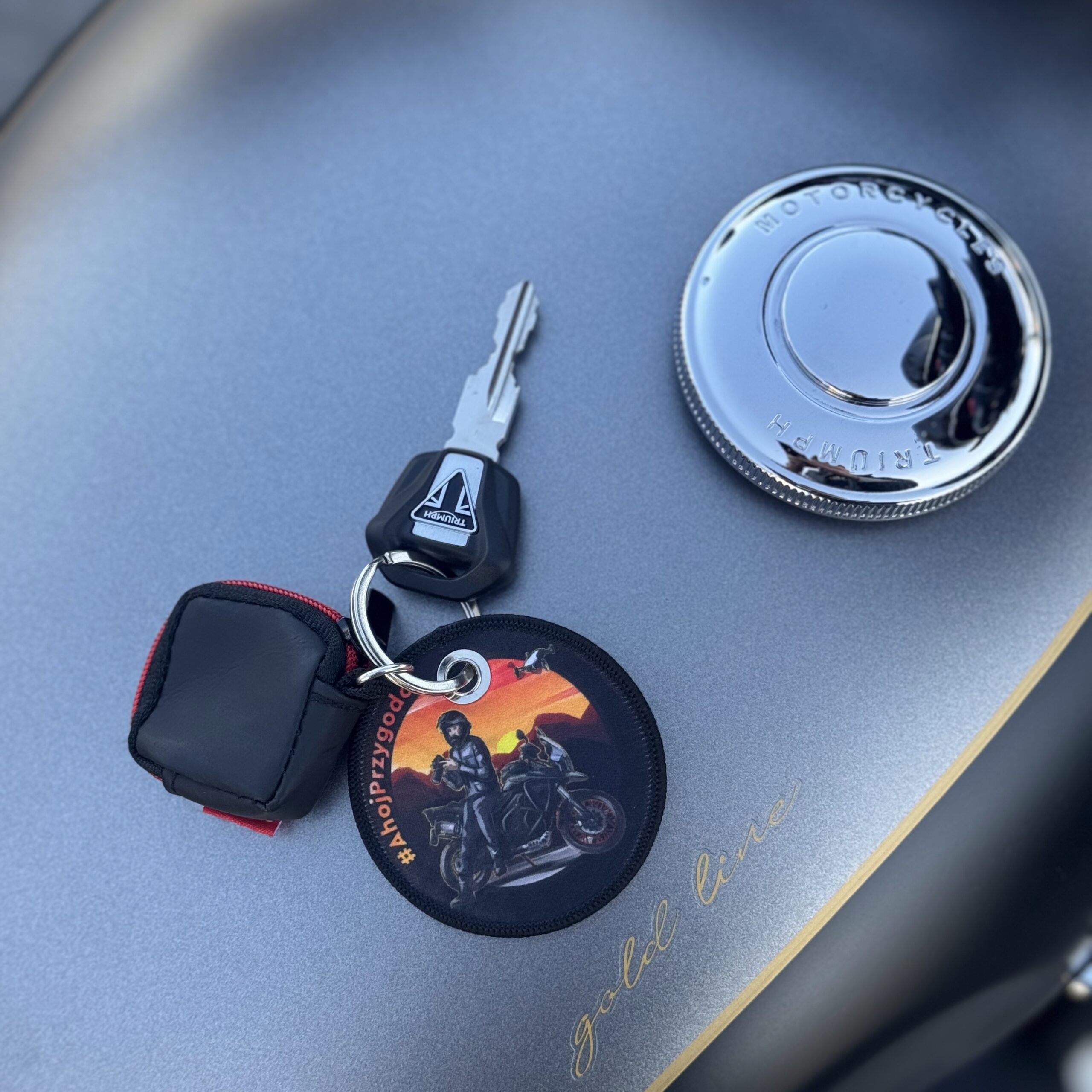 Dwustronny brelok motocyklowy z logo Zulak MotoADV to nie tylko poręczny dodatek. To znak, że jesteś częścią tej samej historii. Historii o samotnych trasach, błocie, słońcu nad namiotem i o tej chwili, gdy zatrzymujesz się, patrzysz przed siebie i mówisz: „Ahoj Przygodo.”